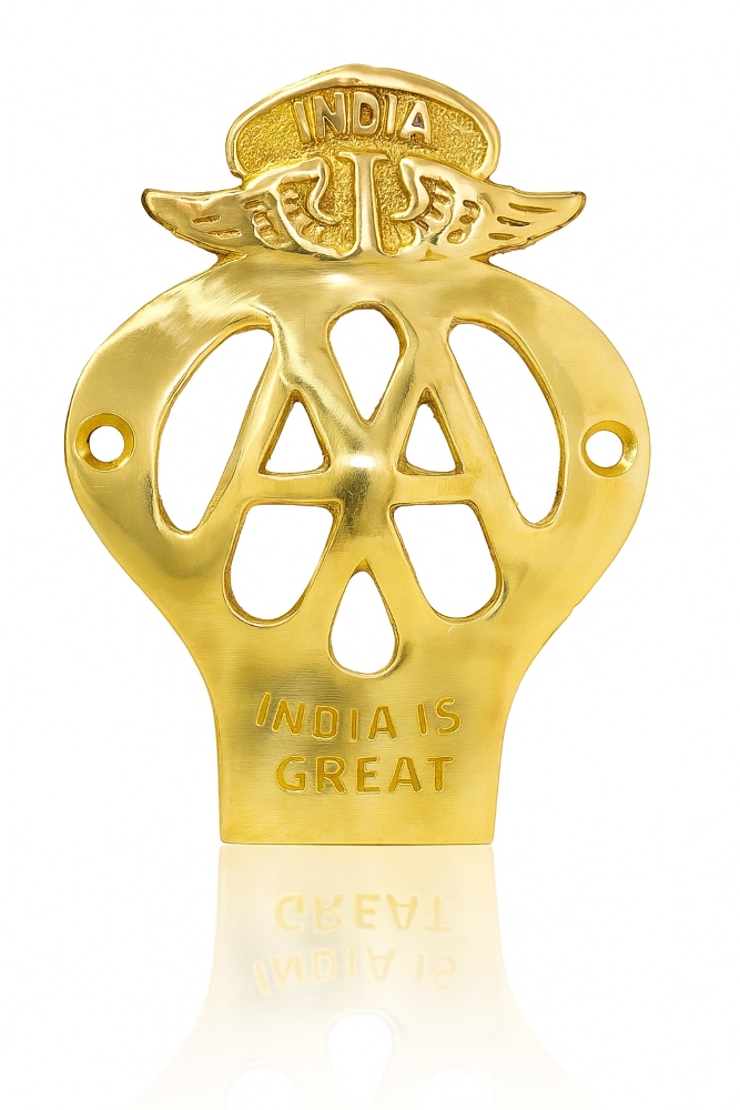 Give your motorcycle a classic vintage touch with this beautifully crafted Brass Emblem Plate. Featuring the bold “India is Great” engraving and a traditional AAA winged design, this emblem is made of high-quality solid brass for durability and a premium look. Perfect for restoring vintage bikes or adding a unique retro charm to modern motorcycles.