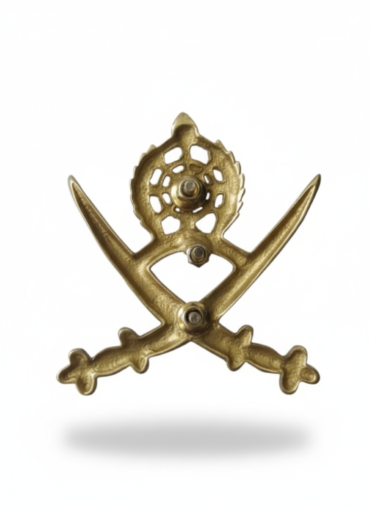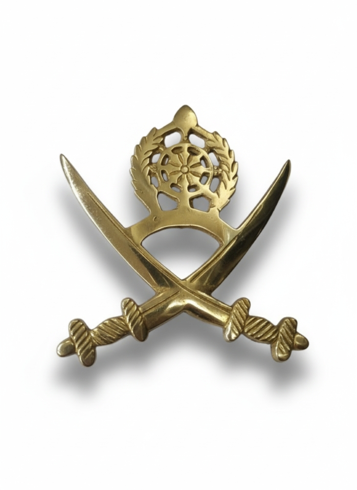 The Brass Talwar Jaali is a unique and elegant emblem crafted with intricate jaali (mesh) detailing and a traditional talwar (sword) design. Made from premium brass, it gives your motorcycle a heritage royal look. Ideal for mudguards, tank sets, and number plates, this piece showcases both craftsmanship and cultural pride.