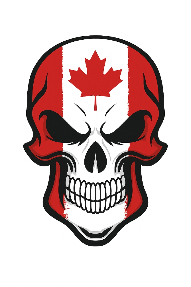 A bold and edgy skull sticker featuring the Canadian flag design. Perfect for bikers, cars, laptops, or helmets, this unique decal combines patriotism with a rebellious touch. Durable, waterproof, and long-lasting — show off your Canadian pride in style.