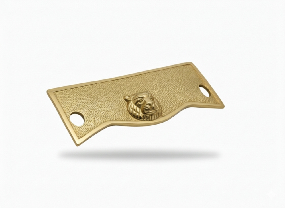 The Lion Crown Plate is a premium motorcycle accessory made from solid brass. With a bold lion emblem design, it adds a royal and aggressive look to your bike while ensuring durability and long-lasting shine.