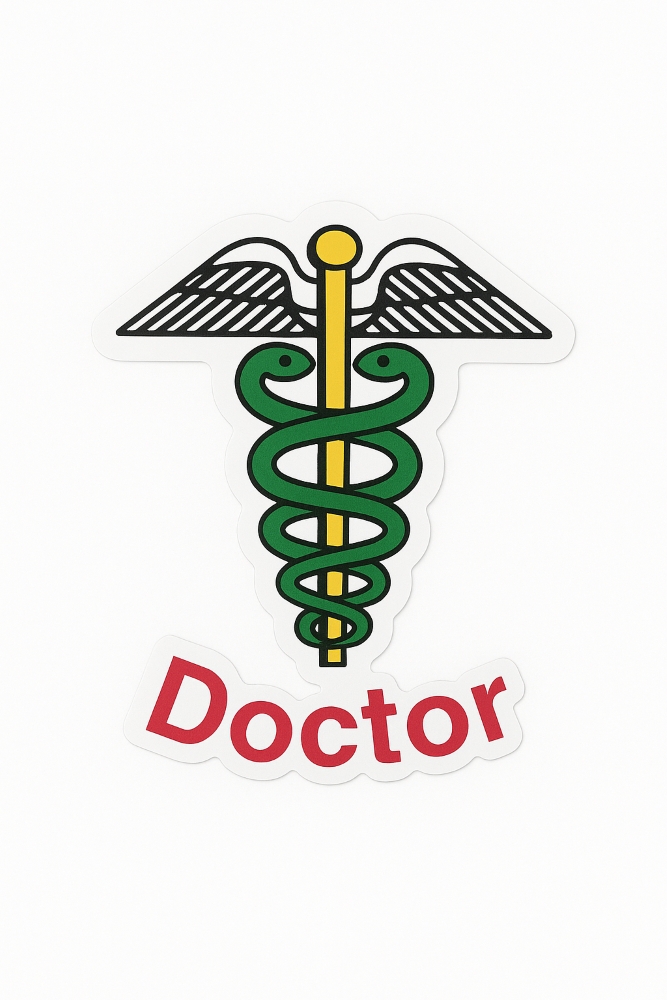 Showcase your profession with pride using this Doctor Logo Sticker. Featuring the iconic Caduceus symbol with intertwined snakes and wings, it represents healing, care, and medical expertise. Made with high-quality material, this durable and easy-to-apply sticker is perfect for cars, bikes, laptops, clinic doors, or personal belongings. A meaningful emblem for doctors, medical students, and healthcare professionals.