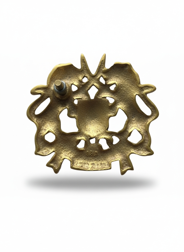 Double Lion with Crossed Talwar – Brass Emblem (Small, Nut Fitting)