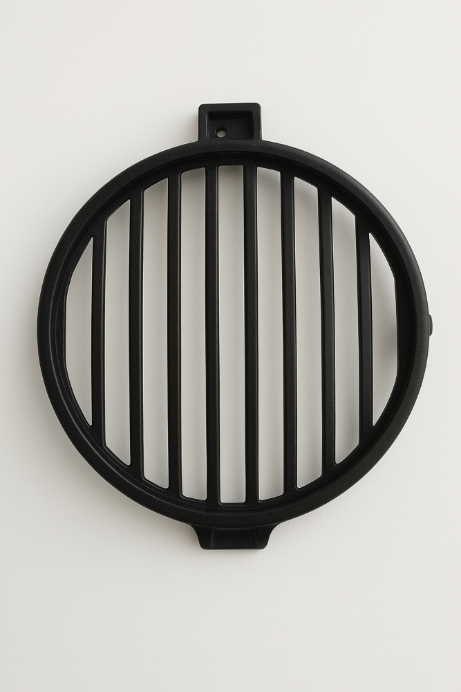 Give your motorcycle a bold and rugged look with this universal black headlight grill cover, designed for 7-inch round headlights. Made from high-quality durable metal, it not only enhances the style of your bike but also provides protection to the headlight from stones, debris, and minor impacts.