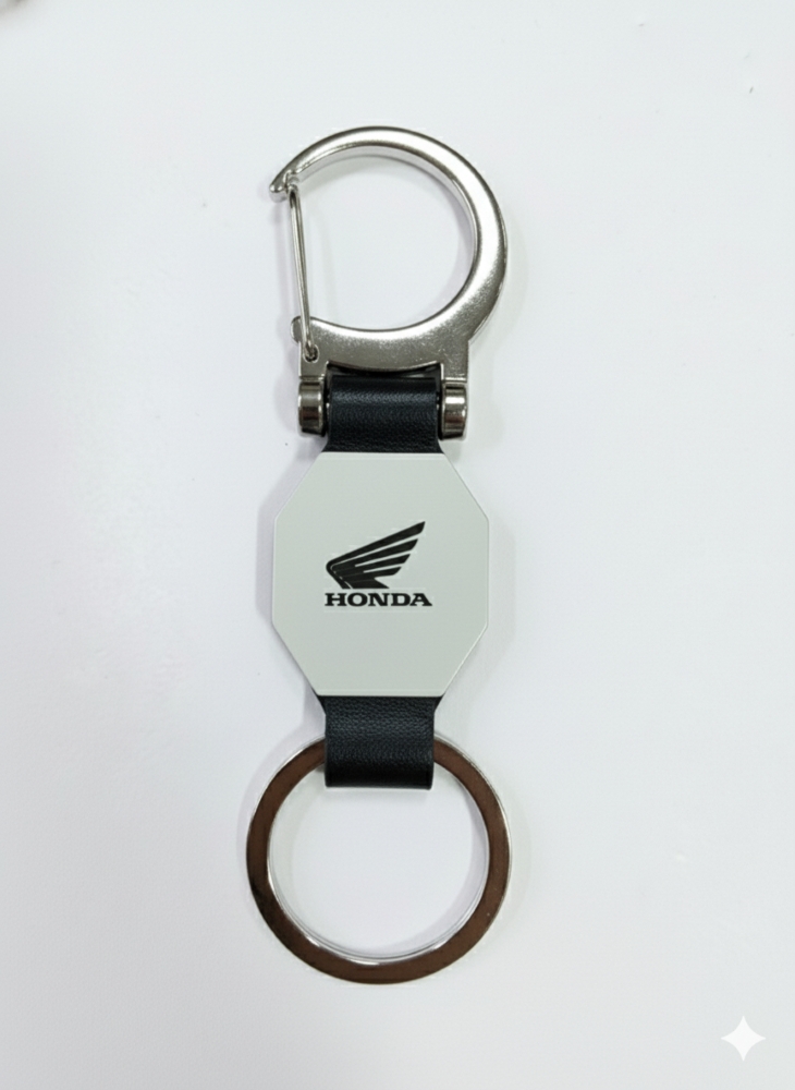 Showcase your Honda pride with this sleek, heavy-duty key fob. This keychain is expertly designed with a durable metal carabiner clip and a stylish leather strap, making it the perfect blend of form and function for your everyday carry.