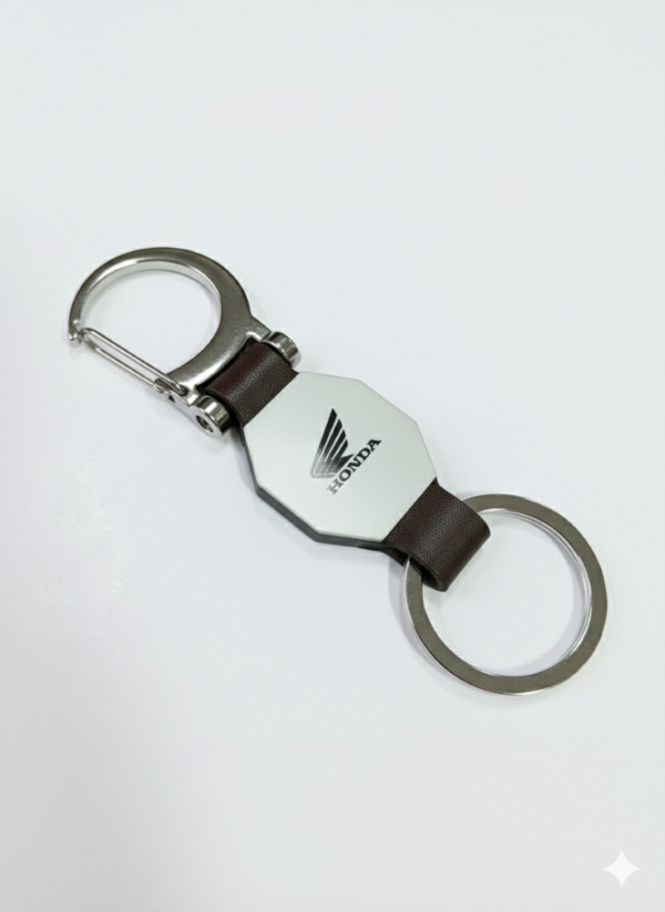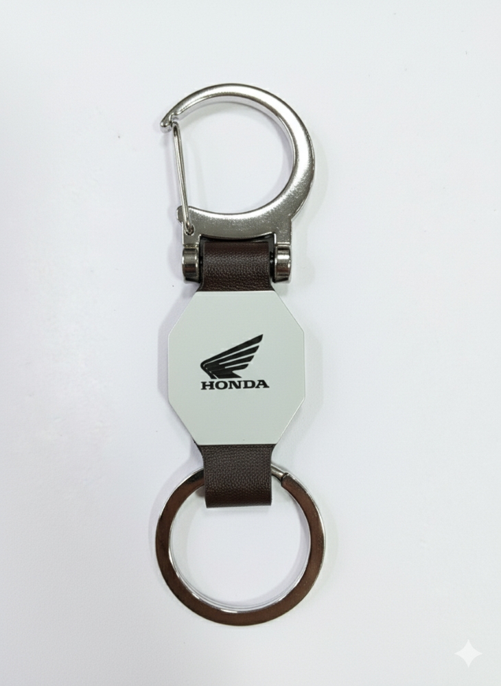 Showcase your Honda pride with this sleek, heavy-duty key fob. This keychain is expertly designed with a durable metal carabiner clip and a stylish leather strap, making it the perfect blend of form and function for your everyday carry.