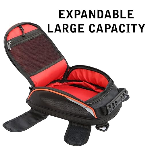 MULTIPLE POCKETS: This mini tank bag is designed keeping in mind the storage needs of bike riders. With multiple external zipper pockets including a transparent pocket at the top, it gives you enough space to store your belongings safely.