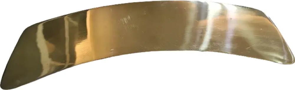 In summary, it is a plain, high-gloss gold-colored curved metal accessory designed to add a simple, reflective accent to a vehicle.