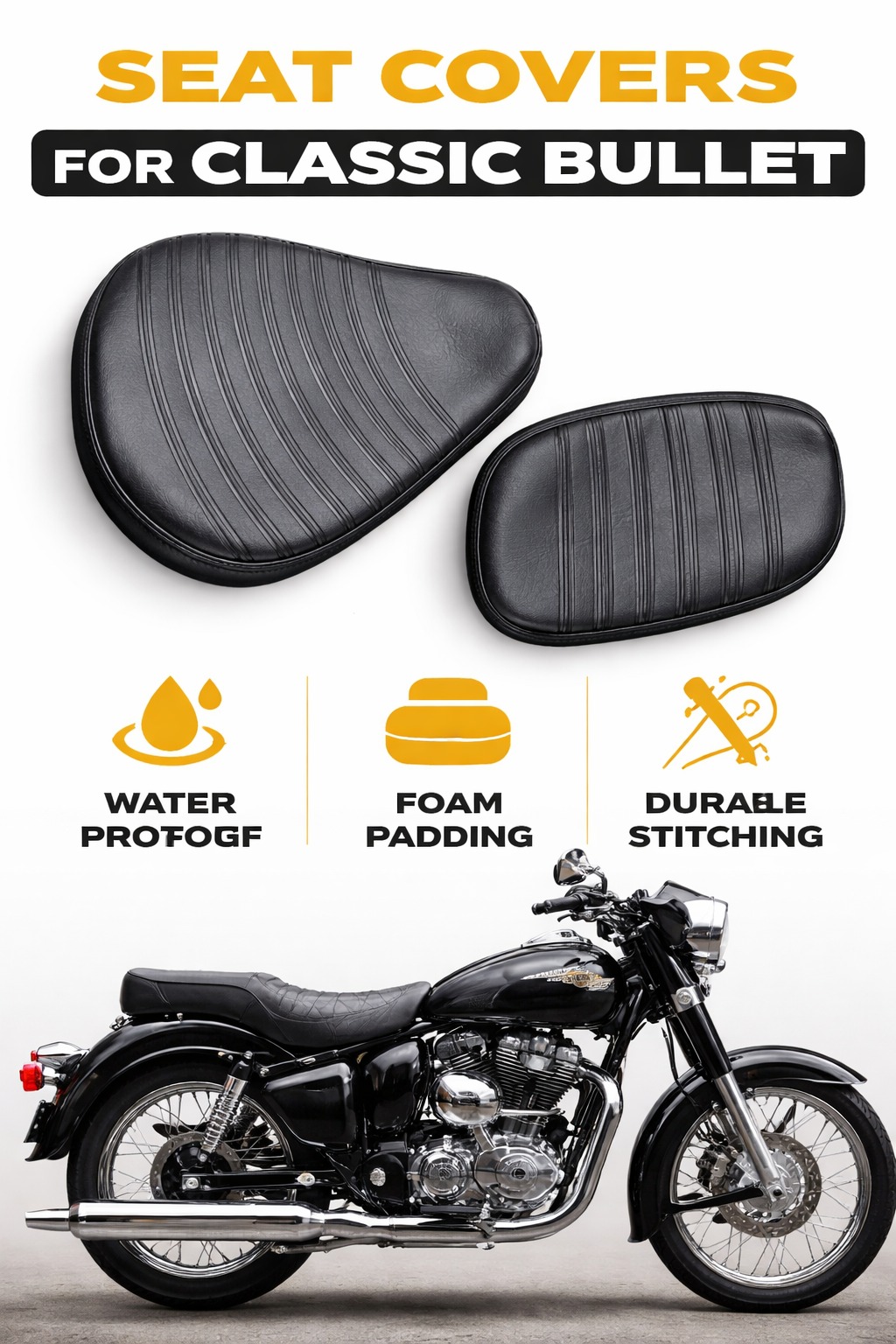 The Black Seat Cover for Classic Bullet is a simple yet effective way to boost comfort, style, and seat longevity — making your bike look fresh and ride better every time.