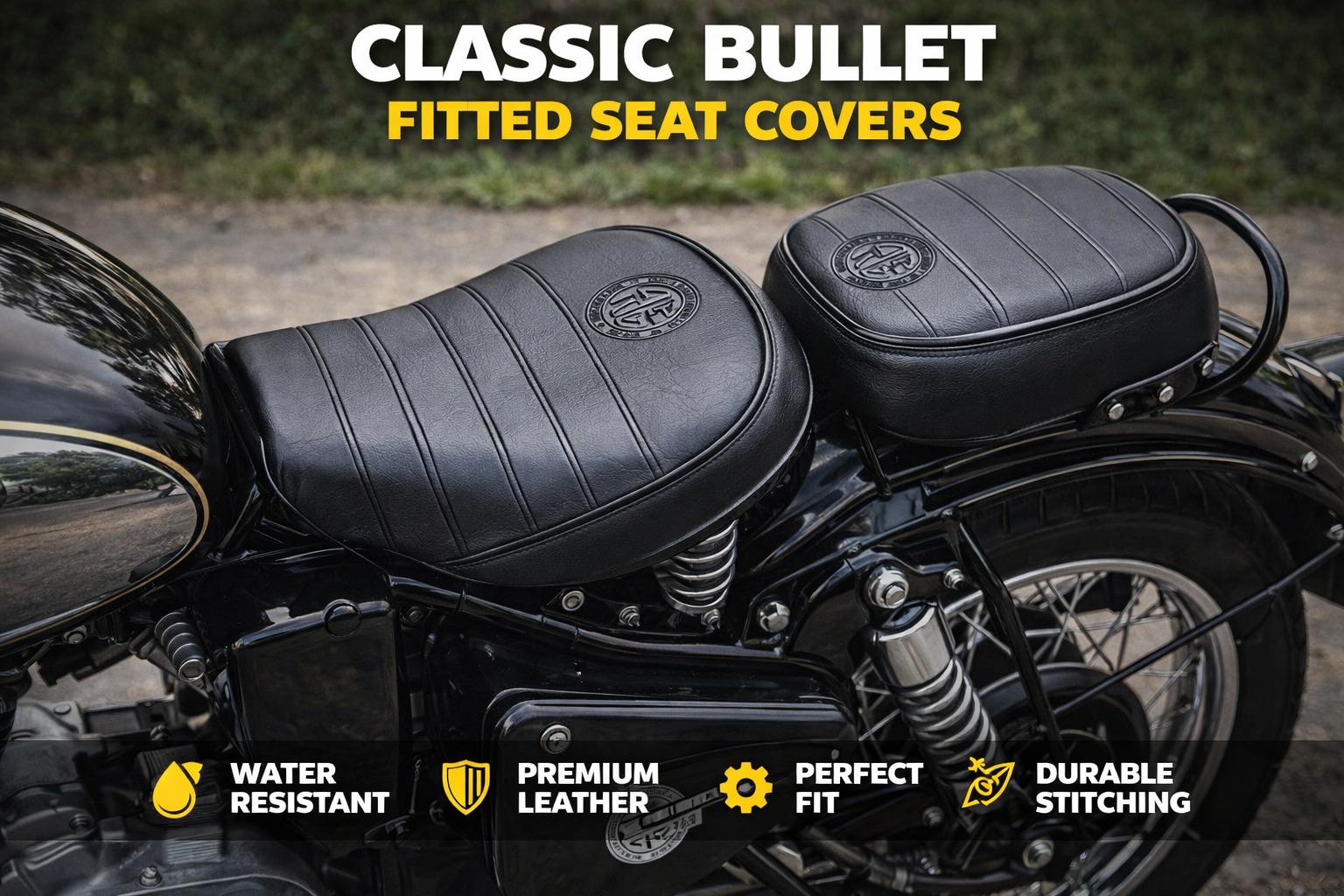 The Black Seat Cover for Classic Bullet is a simple yet effective way to boost comfort, style, and seat longevity — making your bike look fresh and ride better every time.