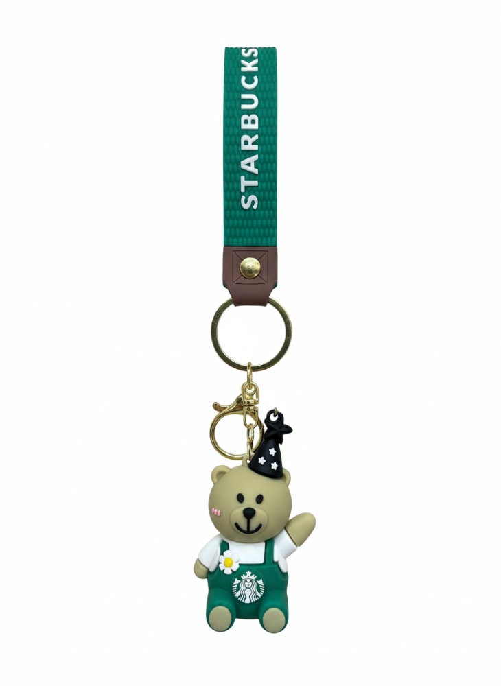 Bring a dose of adorable charm to your keys, bag, or backpack with this delightful set of three Starbear keychains! Each piece features a cute, coffee-themed bear charm hanging from a signature Starbucks green woven strap with the logo clearly displayed.