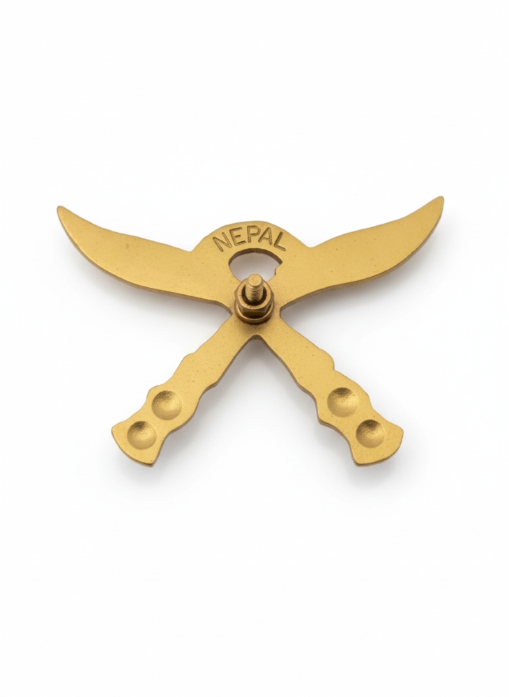 Show your respect for warrior legacy with the Brass Talwar Nepal Big Emblem, designed in the style of traditional Gorkha Kukri Talwars. Made from solid brass, this bold emblem represents bravery, tradition, and pride – a standout addition for any Royal Enfield bike or heritage décor.