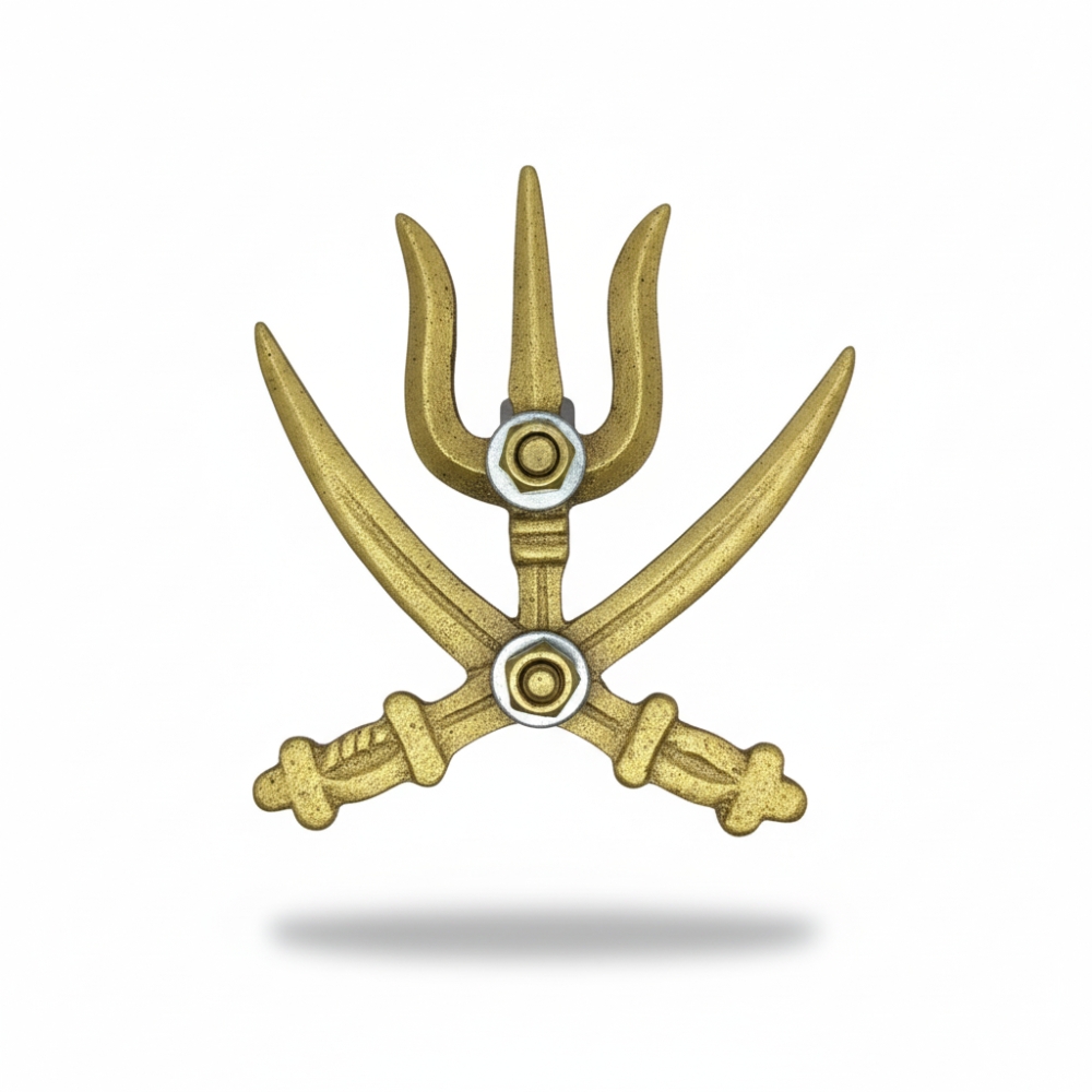 Combining the strength of the Trishul (trident) with the valor of crossed talwars (swords), this brass emblem reflects spiritual power and warrior spirit. Made from premium brass, it's perfect for those who want a bold and meaningful design.