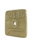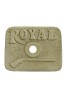 Tapped plate old chrome-plated finish, rectangular shape with embossed “ROYAL” lettering at the top, a central round hole, and a rifle design at the bottom. The surface has a slightly textured background, giving it a classic vintage look.