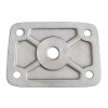 "A rectangular chrome-plated tapped plate featuring four precisely drilled holes at each corner for secure mounting. The surface is smooth and polished, giving it a reflective, mirror-like finish, while the threaded interior provides a firm grip for bolts or screws. Built for durability and corrosion resistance, it combines strength with a sleek metallic appearance."