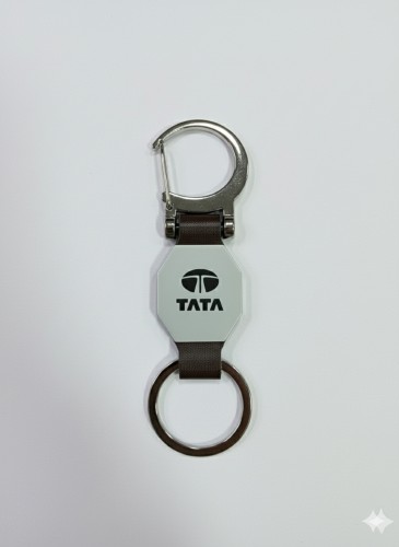 Distinct TATA Branding: Features the recognizable TATA logo and wordmark engraved or printed on a sturdy, octagonal metal fob.