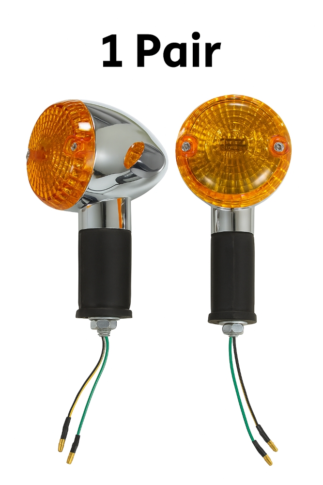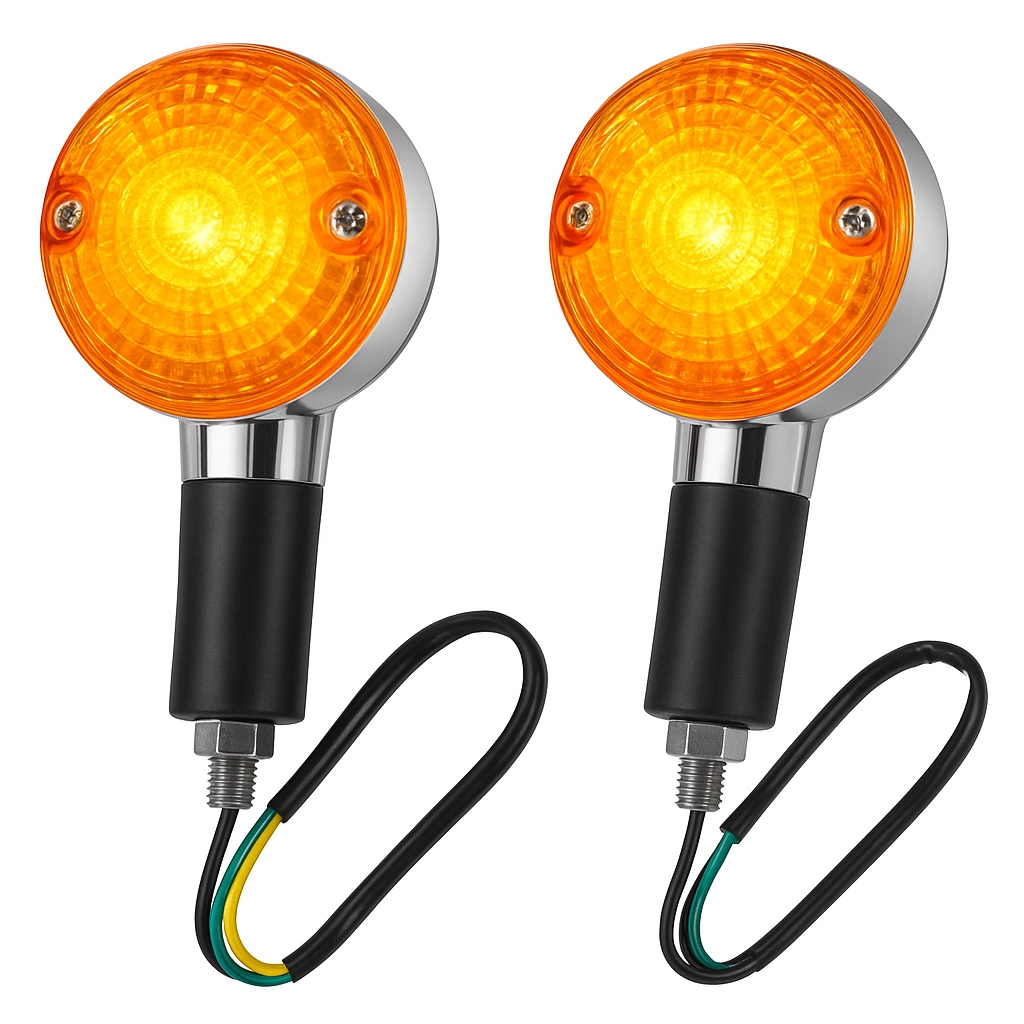 Upgrade your bike’s visibility and style with this Pair of Amber Motorcycle Indicator Lights. Designed with a durable plastic lens and sturdy metal base, these indicators provide a bright amber glow for clear signaling on the road. The compact round shape and easy wiring make them compatible with most motorcycles and scooters. Perfect for replacement or modification, these lights ensure safety with a stylish look.